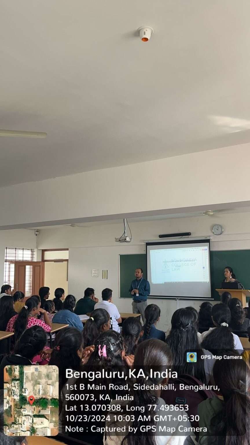 On 23/10/2024, a session on Introduction to Internship was conducted by the Internship and Placement Cell for the freshers. The session started with the faculties in charge of the Cell giving an introduction to the freshers about the importance of internship, what are the mandatory requirements to be fulfilled by the students as per the KSLU guidelines, how to fill the Internship report and diary.