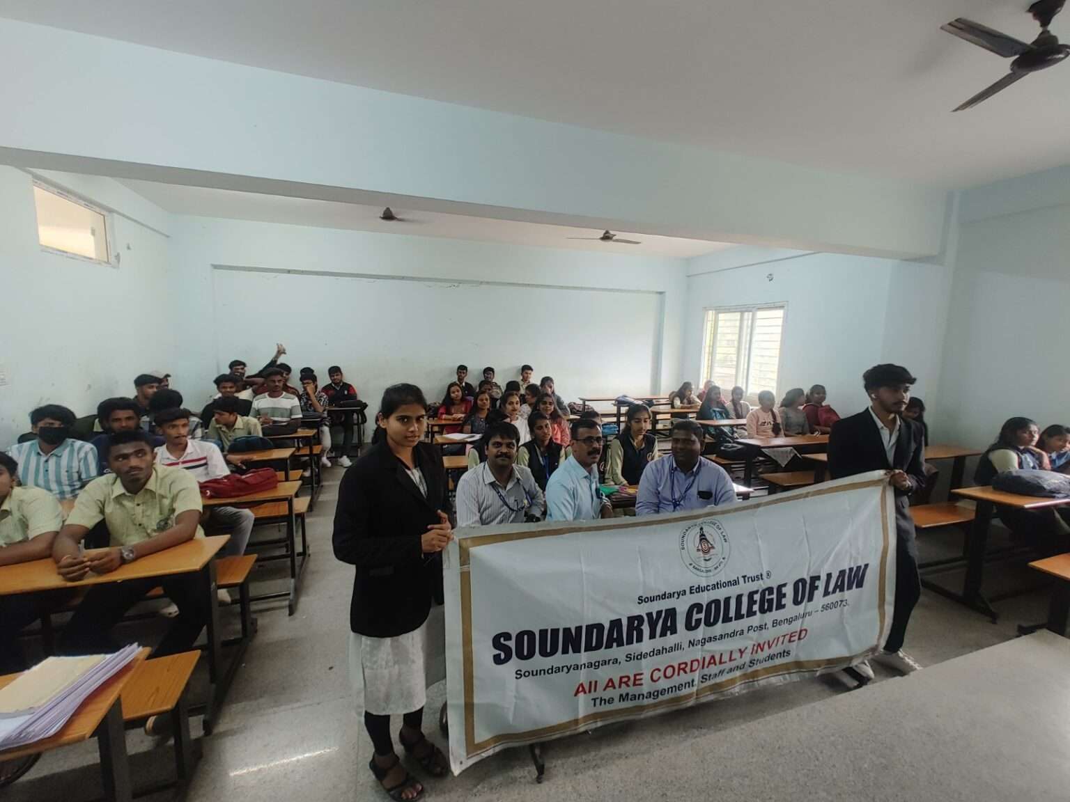Legal Awareness Programme on Cyber Law, Cyber Crimes and Information Technology Act, 2000 was held in Government Pre-University College, Peenya on 14-11-2024 at 1 pm and Government Pre-University College, Hesaragatta at 3 pm. Mr. Siddaramaiah, Principal, Government PU College, Peenya and Ms. Renuka, Principal, Government PU College, Hesaragatta welcomed and introduced Co-ordinators of Legal Services Clinic of Soundarya College of Law Mr. Hanumanthe Gowda N. A. and Mr. Shivakumargouda Patil. Mr. Hanumanthe Gowda N.A. educated the children with the meaning of cyber law and explained different kinds of cyber crimes with the present cases. Mr. Shivakumargouda Patil enlightened students about the punishments for cyber crimes under BNS and Information Technology Act. Student volunteers of Legal Services Clinic of Soundarya College of Law Mr. Amitkumar C., Ms. Rupini Nag, Ms. Shreeya U., Ms. Chitra, Mr. Suchit R., Ms. Malini and Mr. Nikhil were present.